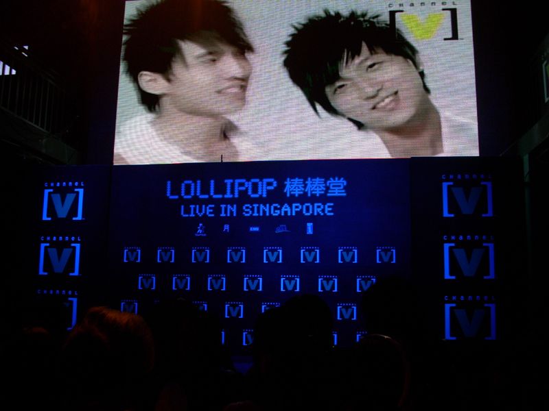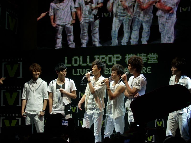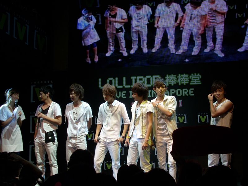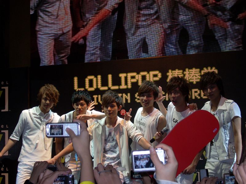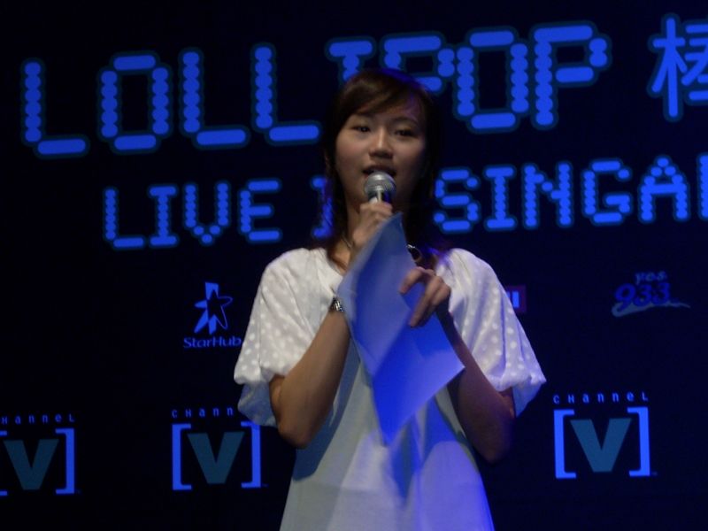 anw, peifen was e host.. and she played some games wif e audience coz lollipop was still on their way.. when lollipop finally came, everyone went crazy! haha... but their performance was so short la! they sang a song & a "组曲" and started e autograph session.. lol..